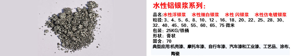 鋁銀漿 英文名:Aluminiumpaste 別名:鋁粉漿;閃光漿;銀漿 鋁銀漿產品,別名:鋁粉漿;閃光漿;銀漿,是一種不可缺少的金屬顏料...